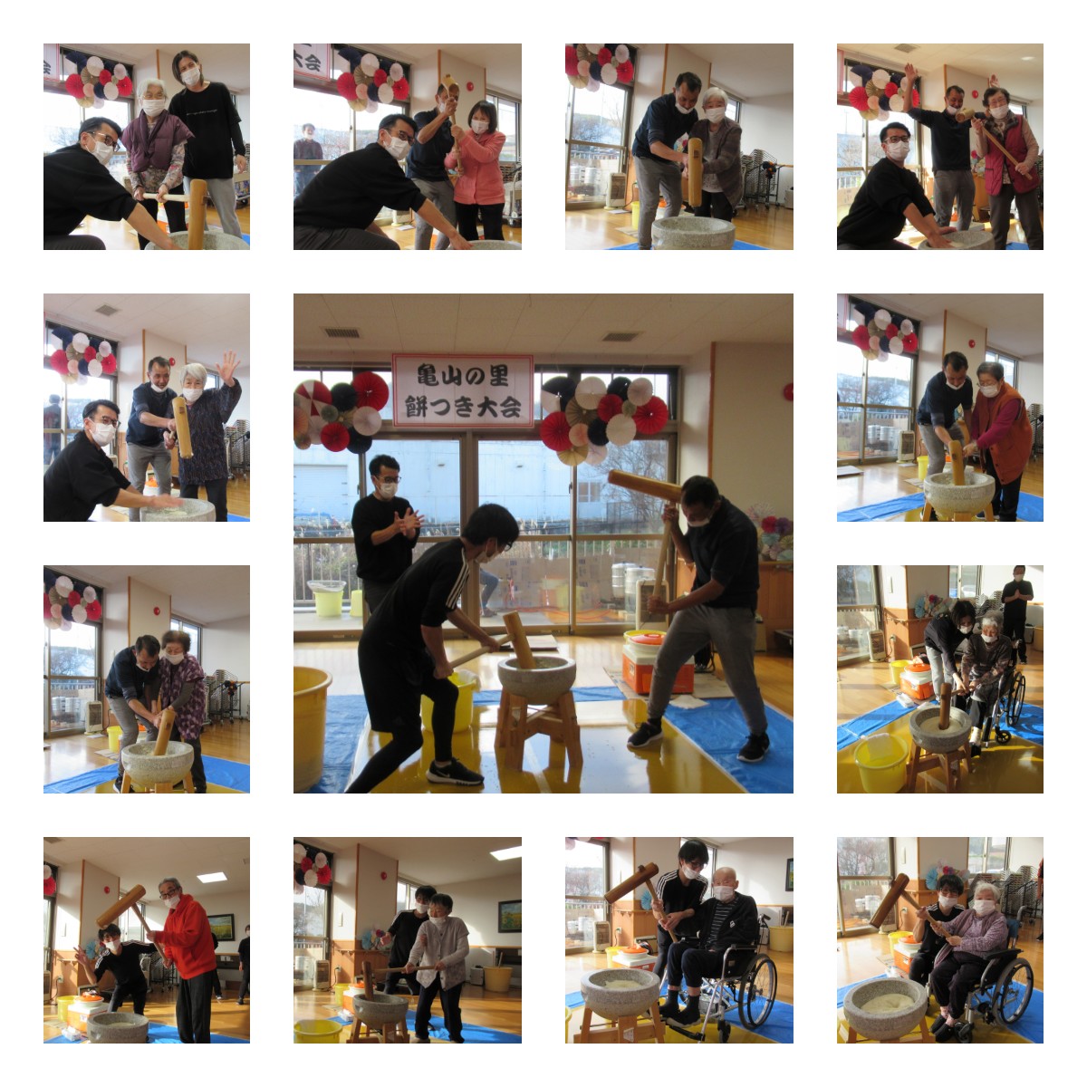 12㎏のもち米を皆さんと順々に搗いては丸めて、搗いては丸めて!(^^)! 「2、3回でも搗いてみようか」とお誘いすると、「よいしょ!よいしょ!」の掛け声につられてか、3回、4回、5回、、、、と続けて搗かれる方ばかり!元気いっぱいの入居様に職員もたくさんのパワーをいただきました!!(*^▽^*)