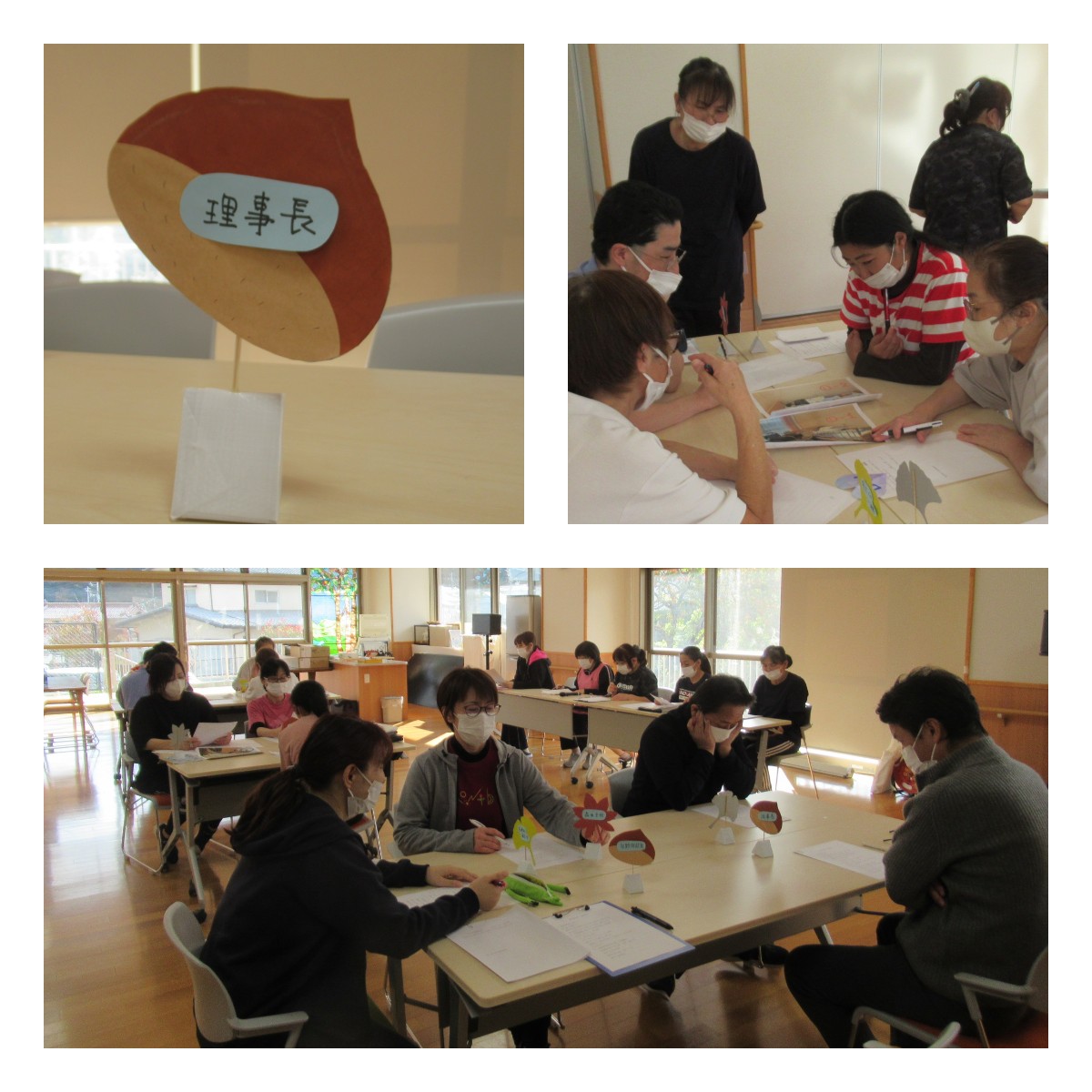 今回は、職員お手製のネームプレートを用意しグループを決めての研修となりました。