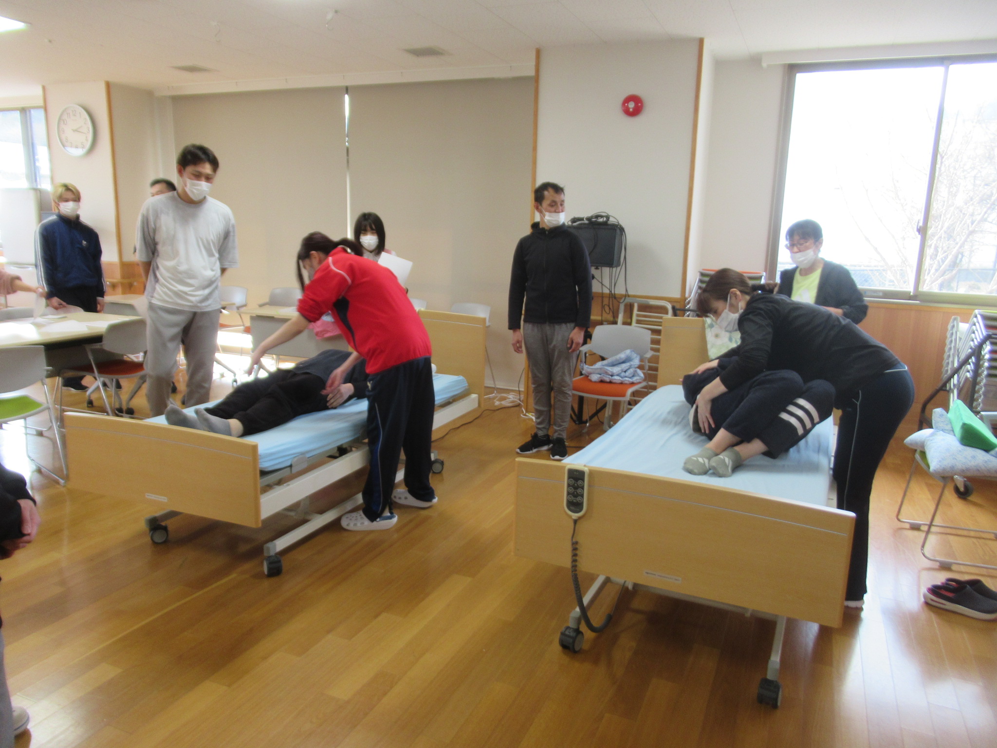 日頃のケアの中で行っていますが、ポイントを教わりながら、二人ペアとなって