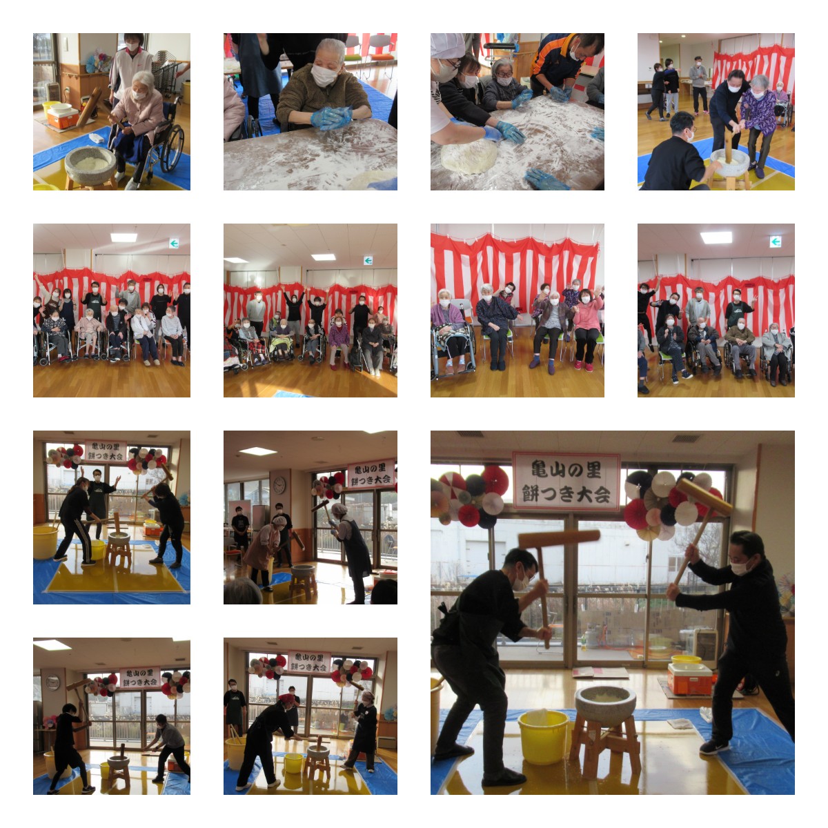 お餅つき大会! 2025年 12月 26日 Fri 管理者 本日亀山の里では年末恒例のお餅つき大会を行いました!! 雪の舞う寒い日でしたが亀山の里は入居者様、職員の熱気でぽかぽかの一日となりました。 12㎏のもち米を皆さんと順々に搗いては丸めて、搗いては丸めて!(^^)! 「2、3回でも搗いてみようか」とお誘いすると、「よいしょ!よいしょ!」の掛け声につられてか、3回、4回、5回、、、、と続けて搗かれる方ばかり!元気いっぱいの入居様に職員もたくさんのパワーをいただきました!!(*^▽^*) いよいよ年の瀬、くる年の馬が駆けてくるのが見えてきましたね~ 何かと慌ただしい年の瀬ですので、ご覧の皆さんも体調を崩されませんように。良い年越しをお過ごしください。 今年一年ありがとうございました。そして、2026年もよろしくお願いします(^^)/