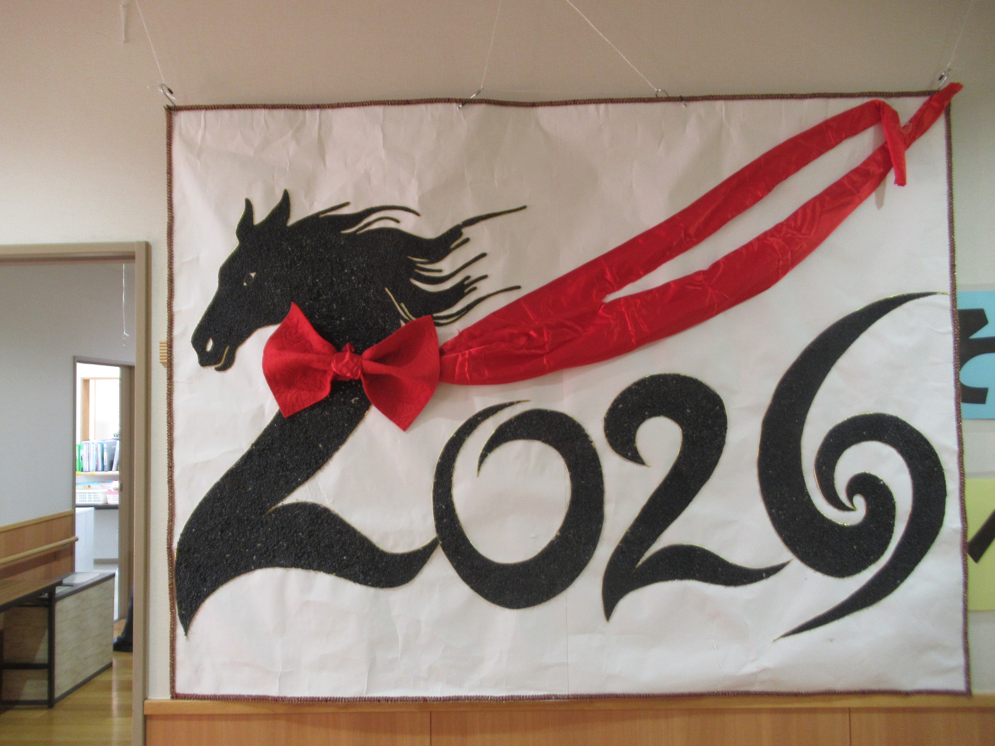 今年はスタイリッシュに馬を見立てた「2026」の数字にしてみました!(^^)! かっこよくないですかぁ~(^_-)-☆ 毎日皆さんをお出迎えしています。