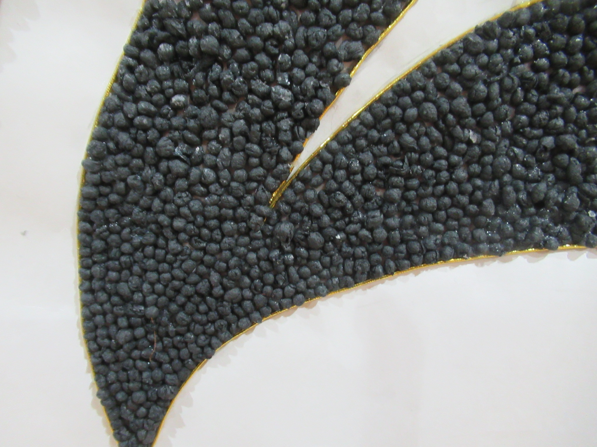 黒色のお花紙をちぎっては丸め、ちぎっては丸めして文字枠に詰めていくという、とても手間のかかる作業です。利用者さまと職員で昨年から準備して少しづつ進めてきて、この度ようやくお披露目です。デイサービス利用の始まりを知らせるものにもなりますね。皆さん、デイサービスルームに入られる前には見上げて、出来栄えを確認されているようです。(#^.^#)