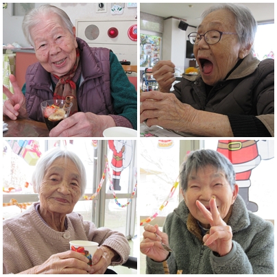 クリスマスイブの昼食 2025年 12月 25日 Thu 管理者 12月24日 本日の昼食は、クリスマスイブ特別メニューをご用意しました。 ミートローフやフライドチキンを中心に、スープ煮やスパゲティサラダ、ごはん、デザートにはクリスマスゼリーを添え、見た目にも華やかな献立となりました。入居者の皆さまからは「今日はごちそうじゃね」「クリスマスらしくて嬉しい」といった声が聞かれ、笑顔あふれるひとときとなりました。 季節行事を食事でも感じていただけるよう、これからも工夫を重ねていきます。 イベント情報 /ごちそうの日 /世界遺産