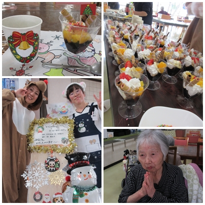 偶数月レクリエーション(手作りコーヒーゼリー) 2025年 12月 25日 Thu 管理者 12月24日 今月の偶数月レクリエーションでは、手作りのコーヒーゼリーを楽しみました。 コーヒーゼリーに、フルーツやホイップクリーム、チョコレートなどを添え、それぞれお好みでトッピング。見た目も可愛らしく、選ぶ楽しさも感じていただけるひとときとなりました。 当日は前寺理事も駆けつけてくださり、入居者の皆さまと一緒に和やかな時間を過ごされました。「甘くて美味しいね」「きれいに盛れたよ」と笑顔があふれ、会話も自然と弾むレクリエーションとなりました。 イベント情報 /屋内行事 /月別レクリエーション