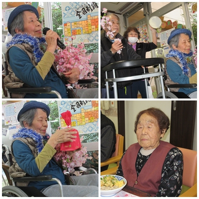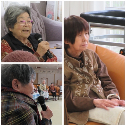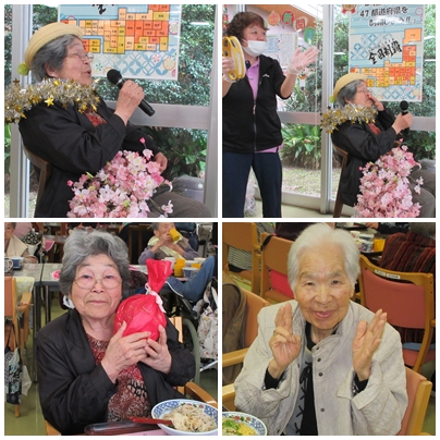 誕生日会の余興として、カラオケを行いました。懐かしい歌謡曲や季節にちなんだ曲が流れると、自然と手拍子が広がり、会場は和やかな雰囲気に包まれました。マイクを手にされた入居者様は、思い出の一曲を気持ちよさそうに歌われ、周囲の皆さまも笑顔で耳を傾けておられました。また、職員も一緒に盛り上げ役となり、会場全体が一体となって楽しい時間を共有することができました。歌に合わせて体を動かしたり、口ずさんだりと、それぞれの楽しみ方で参加される姿が印象的でした。