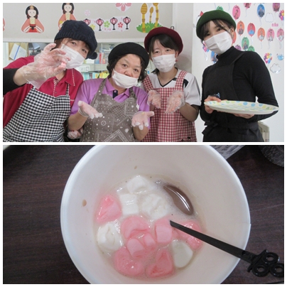 春の足音が少しずつ近づいてきていますが、まだ寒い日が続きます。温かく甘いココアは、体を芯から温め、皆さまの表情も自然とほころびます。カップの中には、ハート形のマシュマロを浮かべ、見た目にも楽しいひと工夫。「かわいいね」「甘くておいしい」と、笑顔と会話が広がりました。