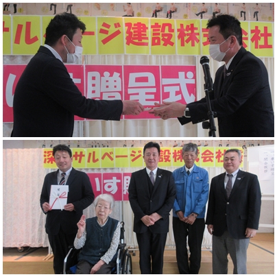 深田サルベージ様より車椅子をご寄贈いただきました 2026年 3月 12日 Thu 管理者 3月9日 このたび、深田サルベージ建設株式会社様より、当施設へ車椅子をご寄贈いただきました。 贈呈式では、関係者の皆様ご臨席のもと、目録の贈呈が行われ、入居者様を代表して感謝の気持ちをお伝えいたしました。ご寄贈いただいた車椅子は、日々の生活支援や行事参加時の移動など、入居者様の安全で快適な生活を支えるために大切に活用させていただきます。 深田サルベージ建設株式会社様の温かいご厚意に、職員一同心より感謝申し上げます。 お知らせ