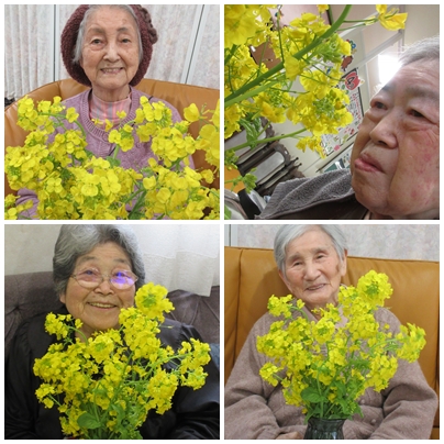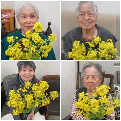 満開の菜の花とともに、春を感じて 2026年 4月 5日 Sun 管理者 4月4日 施設内で育てていた菜の花が、見頃を迎え満開となりました。 食べ頃は過ぎてしまいましたが、鮮やかな黄色の花と、やわらかな緑の茎や葉のコントラストが美しく、春らしさを感じさせてくれます。手に取られた皆さまからも、「きれいだね」と笑顔がこぼれていました。菜の花の花言葉には、「小さな幸せ」「元気いっぱい」「明るさ」といった意味があります。その言葉の通り、周囲をぱっと明るくしてくれる存在となりました。 これからも、身近な自然を通して季節の移ろいを感じていただけるよう取り組んでまいります。 親和園農園 日常