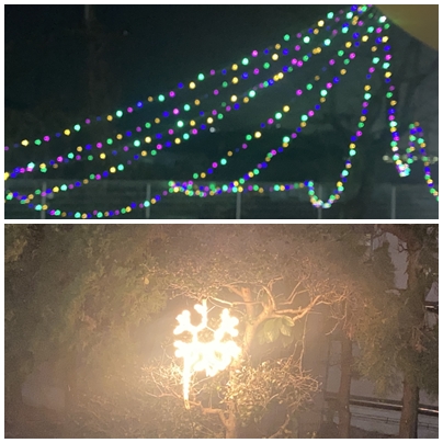 イルミネーションの飾りつけを行いました 2025年 12月 17日 Wed 管理者 12月16日 本日は園庭に、イルミネーションの飾りつけを行いました。 今年は沖主任のアイデアで、食堂前の軒からフェンスに向けて放射状に飾り付けしています。夕方16時頃から20時頃まで点灯し、約一週間ほど楽しんで頂く予定です。車道からもよく見えるので冬の風物詩になりそうですね。 環境