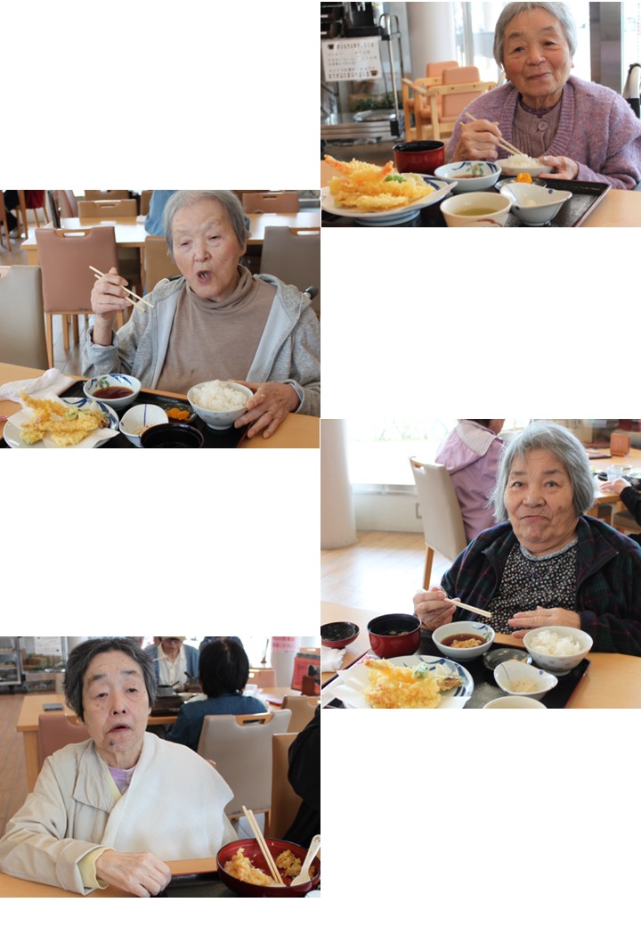 「何を召し上がりますか?」と尋ねると、「うどんか、そばにしようかね」とのお返事でしたが、「今日は遠慮せずにお好きな物を召し上がってください。」とお伝えすると、「天ぷらがええね。食べてみようかね。」と遠慮がちに注文されました。