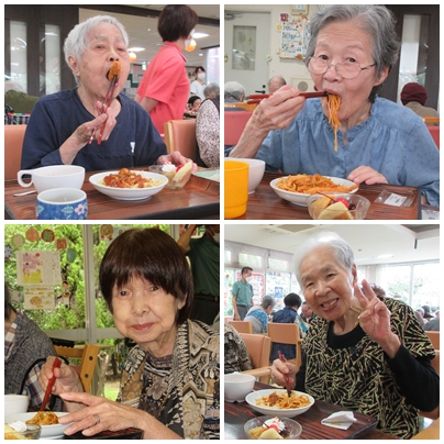 見た目も華やかな洋食メニューに、入居者の皆さまからは「わぁ、豪華!」「昔よく食べたね」と嬉しい声が上がりました。
