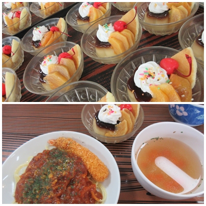 デザートのプリンアラモードには、季節のフルーツとホイップクリームが添えられ、まるで喫茶店のような仕上がり。食堂は笑顔と会話でいっぱいの、あたたかな昼食時間となりました。