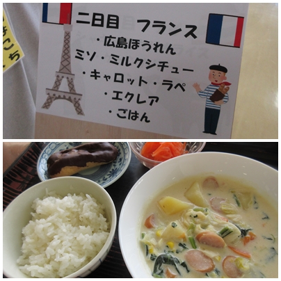 ひろしま給食100万食メニューの第2日目は、フランス料理をイメージした献立を提供しました。