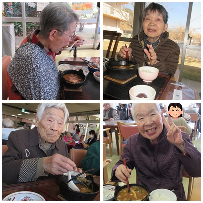 外食の日の楽しみ ~あたたかい鍋料理~ 2026年 2月 20日 Fri 管理者 2月19日 外食の日に、身体も心も温まる鍋料理を楽しみました。 見た目は赤く、少し辛そうに見えますが、実際には辛さは控えめで、どなたにも食べやすい味付けでした。具材の旨味が溶け込んだスープはやさしい味わいで、皆さま箸が進み、笑顔で召し上がっておられました。鍋の締めには、ご飯と粉チーズを加えてリゾット風に。最後まで美味しく味わうことができ、大満足のひとときとなりました。 温かい料理を囲みながら、楽しい会話とともに心も体もぽかぽかと温まる外食行事となりました。 イベント情報/ごちそうの日/外食の日