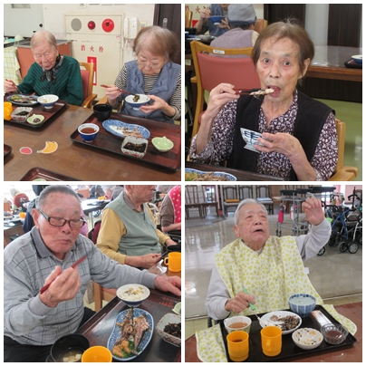 炭火の香りに包まれて~秋の味覚を楽しむ昼食会~ 2025年 10月 22日 Wed 管理者 10月20日 本日は秋の味覚を堪能する外食イベントを開催しました。炭火で香ばしく焼き上げたさんまに、ホクホクの栗ご飯を添えて、まるで定食屋さんに来たような気分。 職員手作りの特製メニューを囲みながら、皆さま笑顔で「おいしいね」「秋が来たね」と談笑されていました。秋の深まりを感じる、あたたかいひとときとなりました。 イベント情報 /ごちそうの日 /外食の日