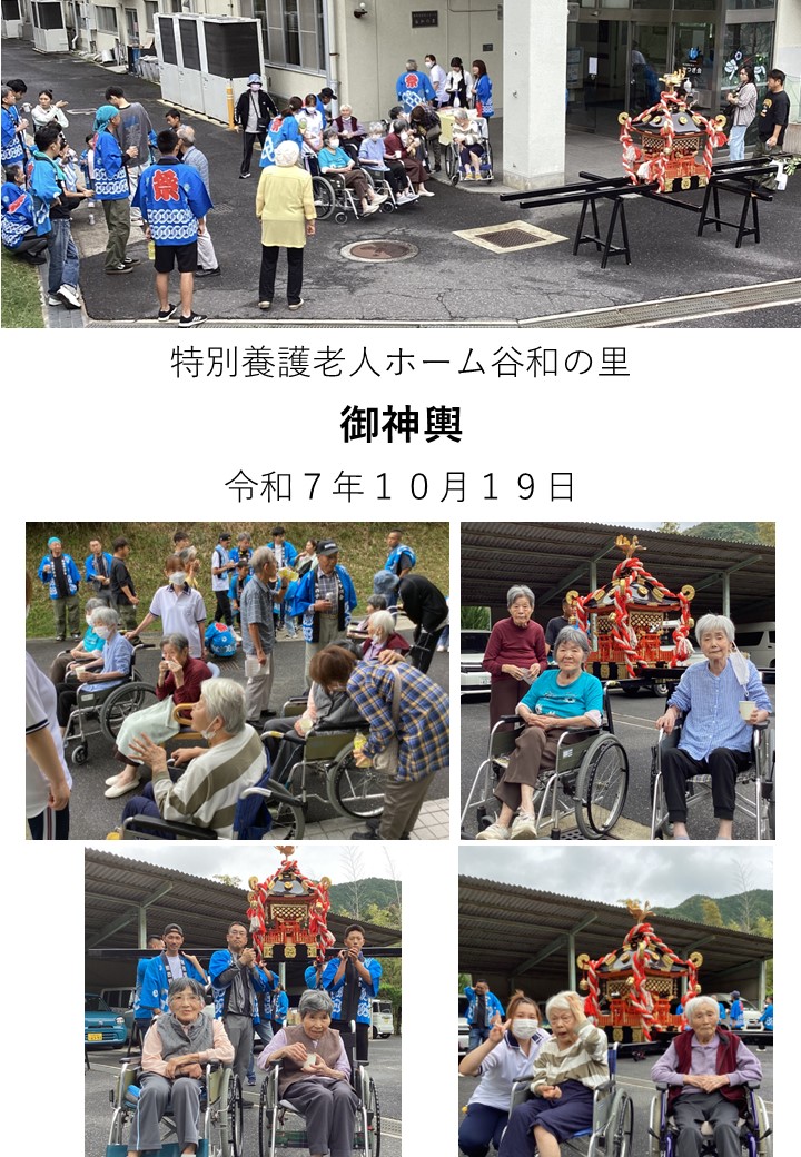 今年も地域の皆さんが谷和の里まで御神輿を担いで来てくださいました(*'▽')/