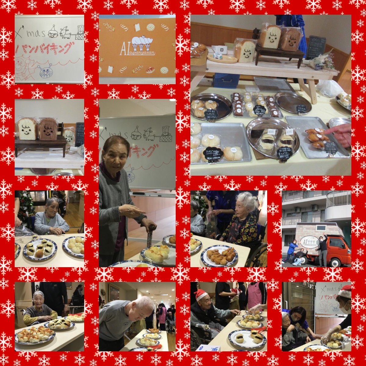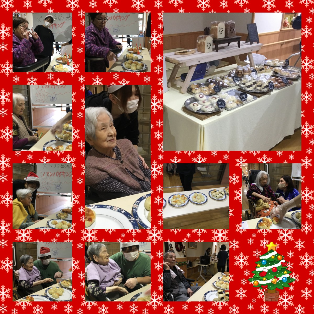 Xmas会「黄ユニット」 2025年 12月 25日 Thu 管理者 ローマ字表記ですが、読みは【あら・ぱんやさん】 今回、黄ユニットに訪問してもらいバイキング方式で皆さんに選んで頂きました(^^)/ 美味しそうなパンがずらりと並んで、どれにしようか選ぶのも迷いますよね~ いつもと違う食事にクリスマス気分を楽しんでもらいました。 【あら・ぱんやさん】のパンには可愛いくまさんや、笑顔のラッピングに入った食パンなど、ウキウキになるものばかり、見かけられた方は是非寄ってみられてはいかがでしょうか(#^.^#)
