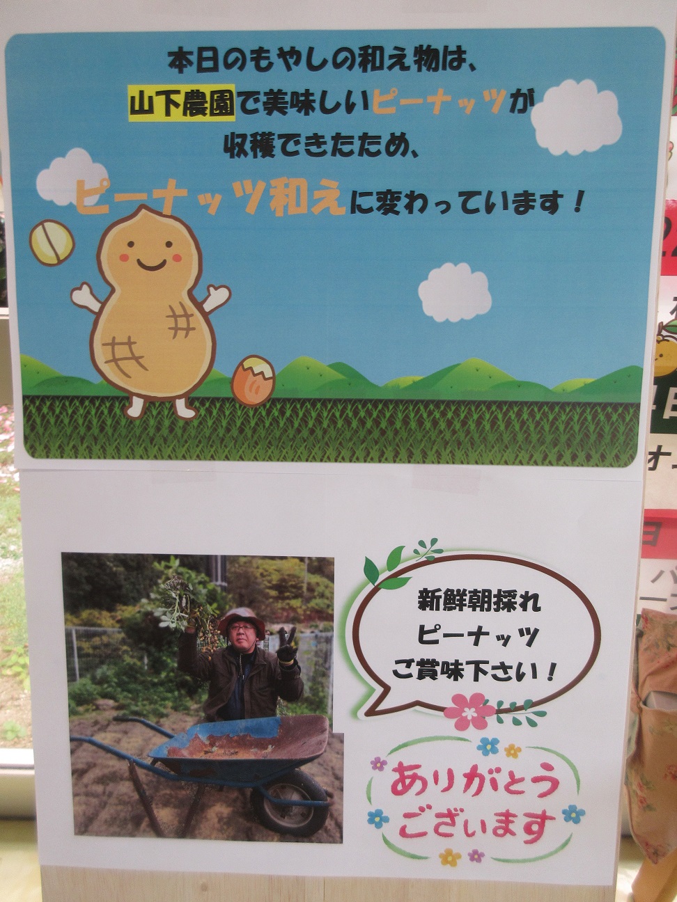 親和園農園の落花生を味わいました 2025年 12月 1日 Mon 管理者 11月28日 親和園農園で収穫したばかりの落花生(ピーナッツ)を掘りたてのまま塩ゆでにして頂きました。カリカリとした煎り落花生とは違い、茹で落花生ならではの”ほくほく感”と、薄皮から広がる豊かな風味が魅力です。 この日は、もやしの和え物に落花生を加え、食感と香りのアクセントに。「おいしいねぇ」「柔らかくて食べやすいね」と、皆さま笑顔で旬の味覚を楽しんでおられました。 季節ごとに収穫物を味わえるのは、親和園農園の恵みのおかげ。自然の恵みに、今日も感謝です。 親和園農園
