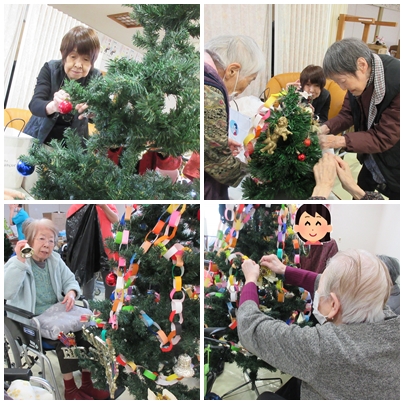 みんなでワクワク!クリスマス飾り付け 2025年 12月 2日 Tue 管理者 11月29日 午後の余暇時間を使って、リースとツリーの飾りつけを行いました。 好きなオーナメントを選び、飾り付けるたびに歓声や笑顔が広がり、フロアが一気にクリスマスモードに。完成したツリーを眺めながら、皆さま満足そうな表情をされていました。 日常