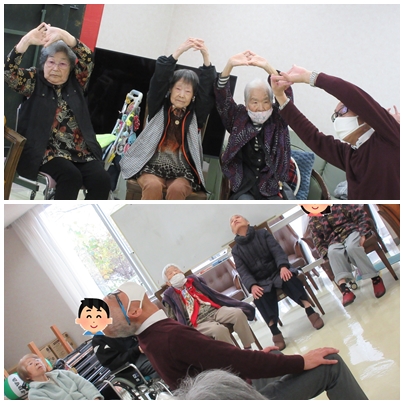 岡部先生によるリハビリ体操の日 2025年 12月 6日 Sat 管理者 12月4日 12月4日は、岡部先生によるリハビリ体操を行いました。 ゆったりとした動きの中で、筋力維持や関節の可動域を意識した運動を取り入れ、参加された皆さんも先生の声掛けに合わせながら、笑顔で身体を動かされていました。日々の生活がより快適になるよう、これからも継続して取り組んでまいります。