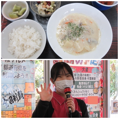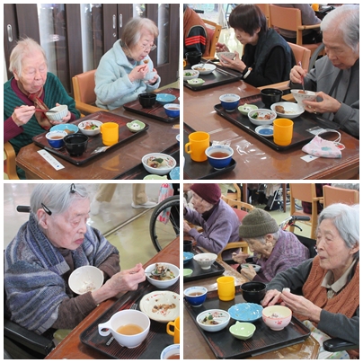 二十四節気「大雪」の行事食 2025年 12月 9日 Tue 管理者 12月7日 12月の二十四節気「大雪(たいせつ)」に合わせ、冬の味覚を取り入れた行事食を提供しました。 この日の献立には、旬を迎えるブリと大根を使用しています。ブリは脂がのった”寒ブリ”として冬を代表する魚で、成長に伴って名前が変わる縁起の良い出世魚でもあります。また大根は冬の養生食として親しまれ、身体を整える効果があるほか、大根おろしには「清め」の意味があるとされ、季節の節目にふさわしい食材です。 ブリのみぞれ煮、大根の田楽、十五穀米、味噌汁、そして雪を思わせる吹雪饅頭を添え、冬の訪れを感じていただける献立となりました。皆さまゆったりと味わわれ、温かい昼食時間となりました。 イベント情報 /ごちそうの日 /行事食