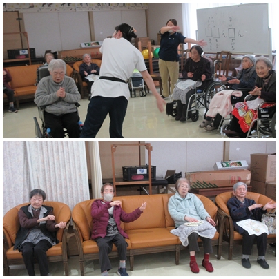 体を動かしてリフレッシュ!機能訓練の日 2025年 12月 1日 Mon 管理者 11月24日 今日は機能訓練の日として、音楽に合わせて身体を動かす体操や、上肢・下肢の運動を行いました。 皆さま、笑顔でスタッフと一緒に積極的に参加され、和やかな雰囲気の中でしっかりと身体を動かすことができました。無理のない範囲で続けることで、日々の生活がより快適になるよう支援してまいります。 イベント情報 /屋内行事 /機能訓練の日