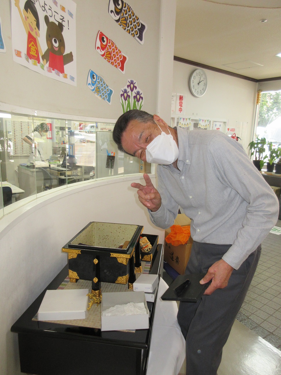春の陽気に包まれて ~ミニデイサービスお散歩&五月人形飾り~ 2026年 4月 21日 Tue 管理者 4月16日 気持ちの良い青空のもと、ミニデイサービスの時間を利用して親和園農園までお散歩に出かけました。やわらかな日差しと心地よい風を感じながら、ゆったりとしたひとときを過ごしていただきました。 また、5月を前に前寺理事が来園され、ロビー正面玄関に立派な五月人形を飾ってくださいました。季節の移ろいを感じられる華やかな飾りに、皆様も笑顔で記念撮影を楽しまれていました。 春から初夏へと向かうこの季節、これからも日々の中で季節感を大切にした時間をお届けしてまいります。 イベント情報/屋内行事/ミニデイサービス 環境